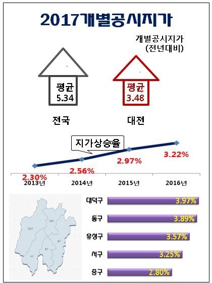 | ▲2017 대전시 개별공시지가 인포그래픽. <자료제공=대전시청> |