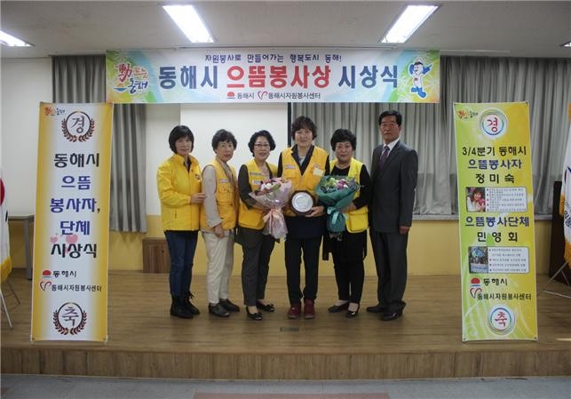 동해시 으뜸봉사상은 분기별 으뜸봉사자 및 으뜸봉사단체를 선정해 사회적 가치와 의미를 부여하고 봉사활동의 적극적인 참여와 자원봉사활성화에 기여함은 물론 자원봉사 실천과 지역사회를 위한 공로를 인정하고 격려하기 위해 지난해부터 심사 선정하고 있다.
