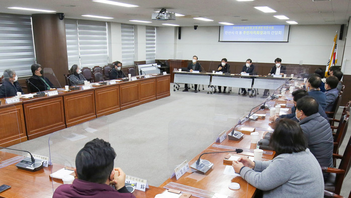 | ▲ 안산시의회 기획행정위원회가 지역 동 주민자치회장들과 간담회를 갖고 주민자치회 운영 관련 의견을 청취하고 있다. (사진=안산시의회) |