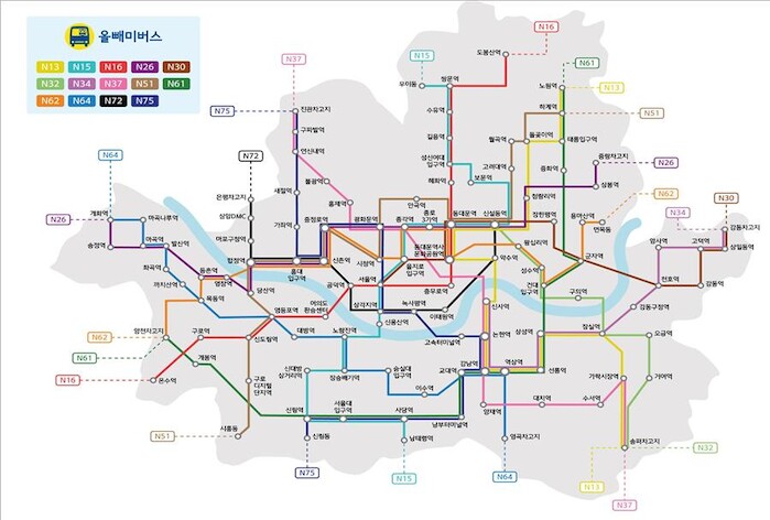 | ▲서울시 올빼미 버스 노선도 ⓒ서울시 |