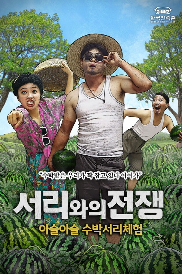 수박밭을 지키는 민속촌 마을이장 캐릭터와 수박서리하려는 관람객의 아슬아슬한 추격전이 긴장감과 웃음을 자아낸다.