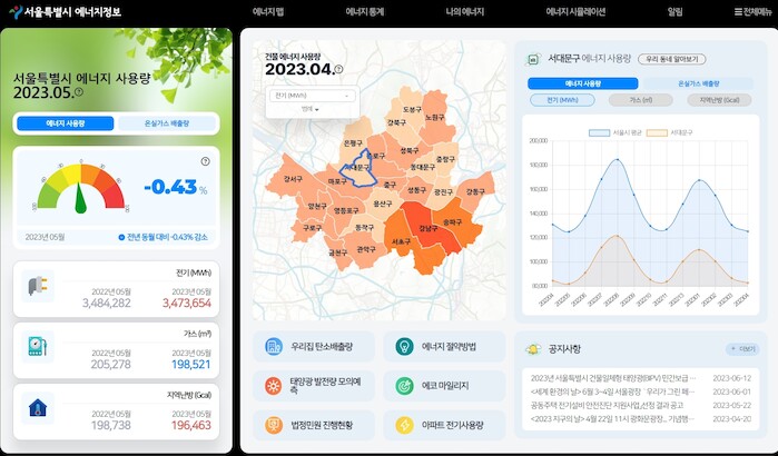 누리집을 통해 서울시 및 자치구의 법정동·행정동·건물유형별 에너지(전기·가스·열) 사용량 및 온실가스 배출량을 확인할 수 있다.