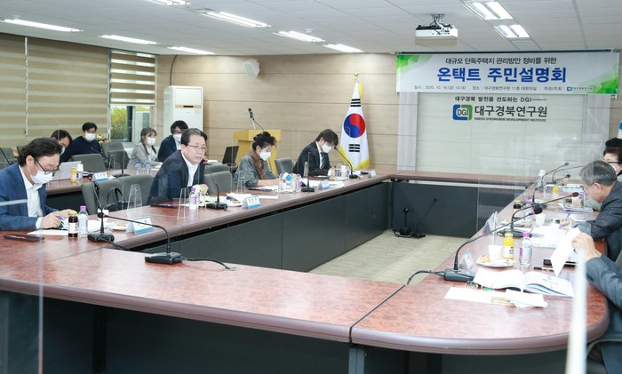 ‘대규모 단독주택지 관리방안 정비를 위한 온택트 주민설명회’는 대구시가 대구경북연구원에 의뢰한 ‘대규모 단독주택지 관리방안 정비 용역’ 추진과정의 일환으로 강민구 부의장 및 각 대학 교수진 등 해당 지역 주민대표 등이 참석했다.