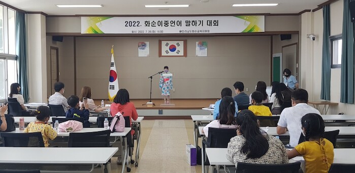 [세계로컬타임즈 강석운 기자] 화순교육지원청(교육장 이현희)은 지난 26일 화순교육지원청 대회의실에서 ‘2022. 화순 이중언어 말하기 대회’를 개최했다.