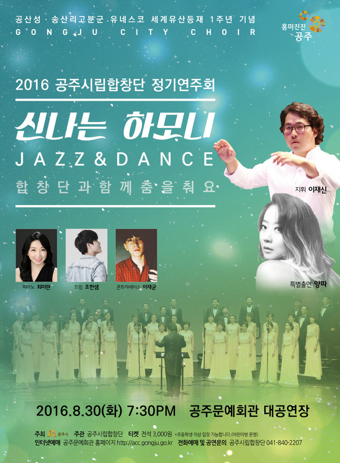 [세계로컬신문 온라인뉴스팀] 충남 공주시(시장 오시덕)가 오는 30일 저녁 7시 30분 공주문예회관 대공연장에서 공주시립합창단 정기연주회 ‘신나는 하모니 재즈&댄스’를 연다.