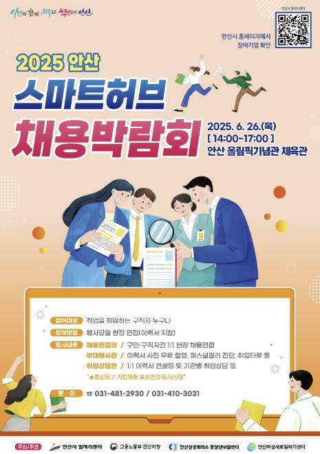 ‘2025 안산 스마트허브 채용박람회’는 인력난을 겪고 있는 기업체에 우수인력을 지원하고, 취업을 희망하는 구직자에게는 일자리 기회를 제공하는 등 취업난을 해소하기 위한 대규모 채용의 장이다.