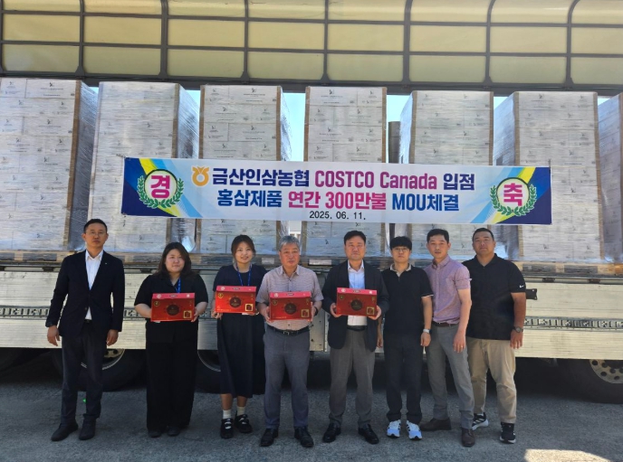지난 11일 부여군 은산면 소재 금산인삼농협 가공공장에서 인삼가공제품 3,600세트의 캐나다 코스트코 두 번째 수출을 축하하는 출고식이 열렸다.