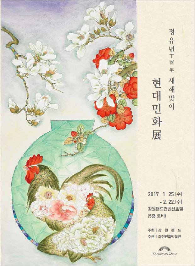 [세계로컬신문 온라인뉴스팀] 조선민화박물관(관장 오석환)은 강원랜드 컨벤션호텔에서 다음달 22일까지 닭을 주제로 한 '정유년 새해맞이 현대민화' 전시회를 연다.