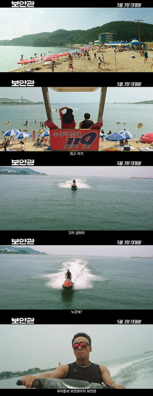 또 예고편 속 일광해수욕장의 금빛 모래사장에 젊은 남녀의 모습을 비추고 수상구조대 감시탑에서 대원들이 "뭐고 저거?", "고마 냅둬라", "누군데?", "우리 동네 보안관이지 보안관"이라고 대화를 나누며 이성민의 캐릭터를 보여 준다.