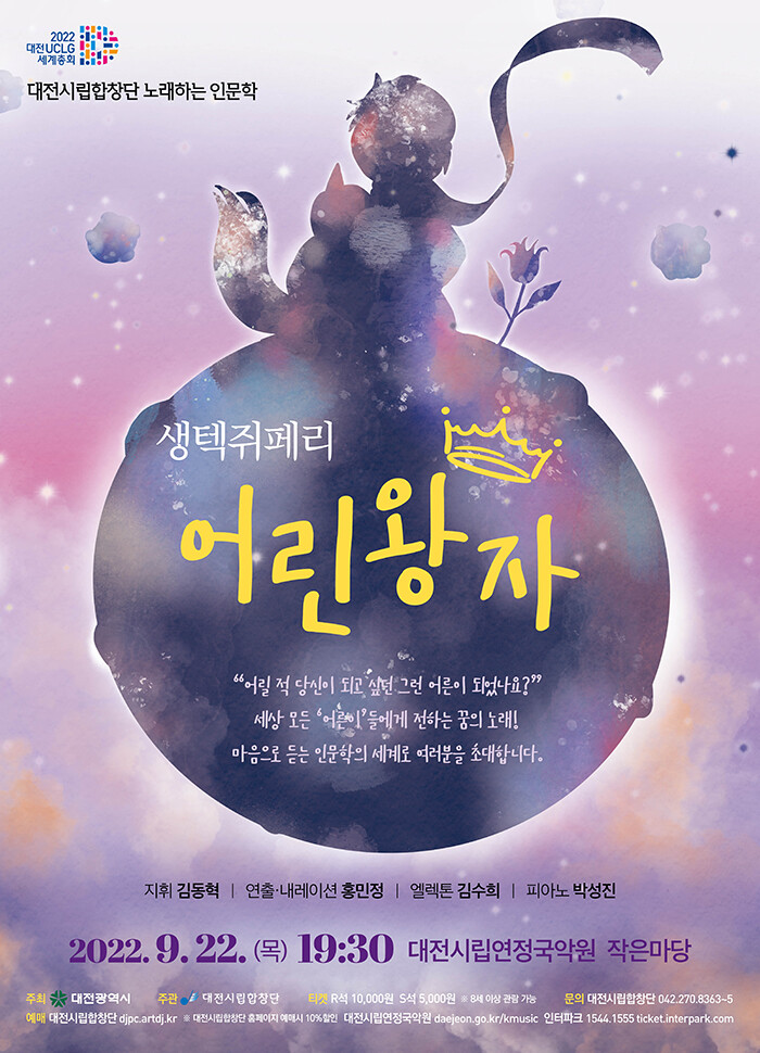 [세계로컬타임즈 민순혜 기자] 대전시립합창단 노래하는 인문학 생텍쥐페리의 ‘어린왕자’가 오는 22일 오후 대전시립연정국악원 작은마당 무대에 오른다.