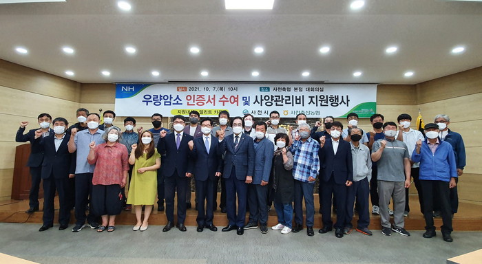 | ▲ 2021년도 우량암소 인증서 수여식.(사진=사천축협) |