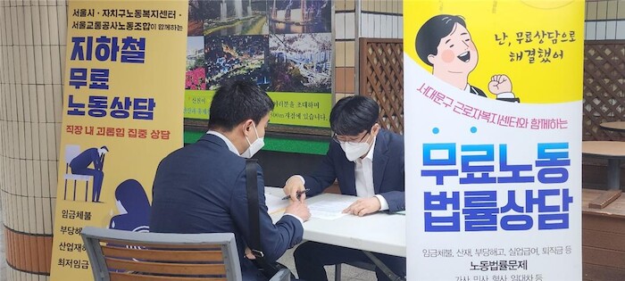 ‘찾아가는 지하철 노동상담’은 서울노동권익센터와 시립·구립 노동자지원센터 등 22개 기관에 소속된 공인노무사가 직접 지하철 역사로 나가 일하는 서울시민을 대상으로 1대 1로 상담한다.