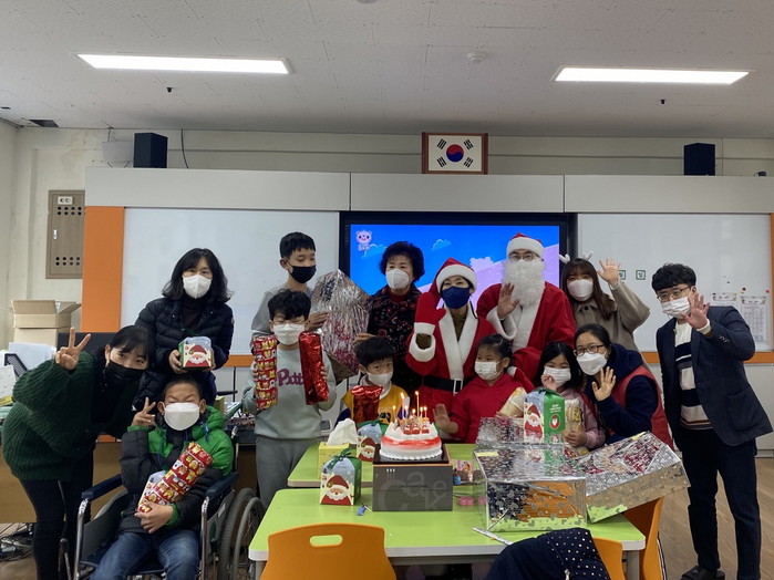 선물을 전달 한 후 크리스마스 케익을 점등하고 함께 초를 불며 특수교육 대상 학생들과 소통할 수 있는 소중한 시간을 가졌다.