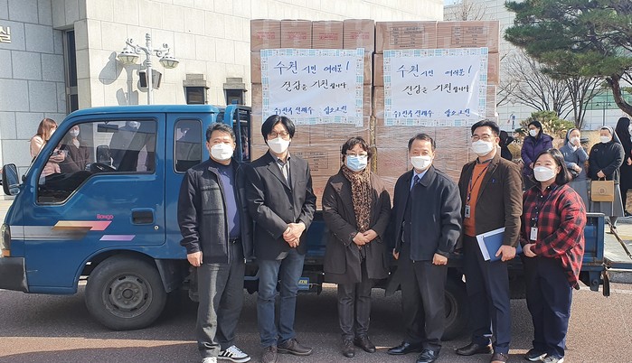 수원시 관계자는 “코로나19가 확산되면서 마스크·손 세정제 품귀현상이 일어나고 있다”며 “이에 지역 기업이나 사회단체 등에서 취약계층에 마스크·손 세정제를 지원하는 따뜻한 손길이 이어지고 있다”고 밝혔다.