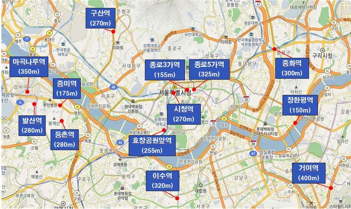 시청역‧등촌역‧효창공원앞역‧이수역 등 총 13곳(3.5㎞) 쿨링로드 가동