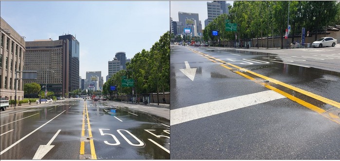 쿨링로드는 지하철역에서 버려지는 지하수를 활용 도로면에 물을 분사시키는 방식으로 가동된다.