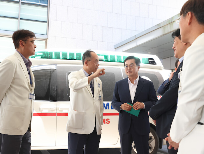 김동연 지사는 “경기도 전체 중증응급환자의 25%를 아주대가 담당하고 있는데, 최근 의료진 자진사퇴로 많은 어려움을 겪고 있다고 들었다”면서 현장 의료진을 위로했다.