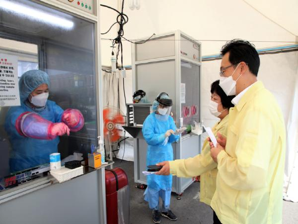 [세계로컬타임즈 김시훈 기자] 고영권 제주특별자치도 정무부지사는 제주국제공항 워크스루 선별진료소를 방문해 방역 담당자들을 격려했다.