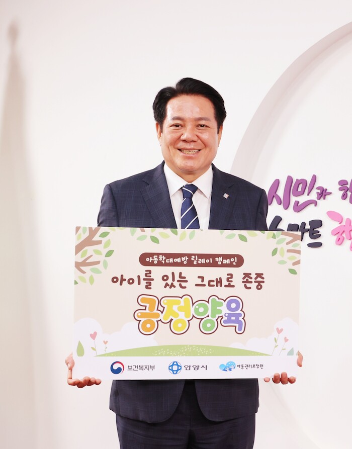 [세계로컬타임즈 이효진 기자]최대호 안양시장이 지난 29일 아이를 있는 그대로 존중하는 ‘긍정양육’ 문화를 확산하기 위한 아동학대 예방 릴레이 캠페인에 동참했다고 30일 밝혔다.