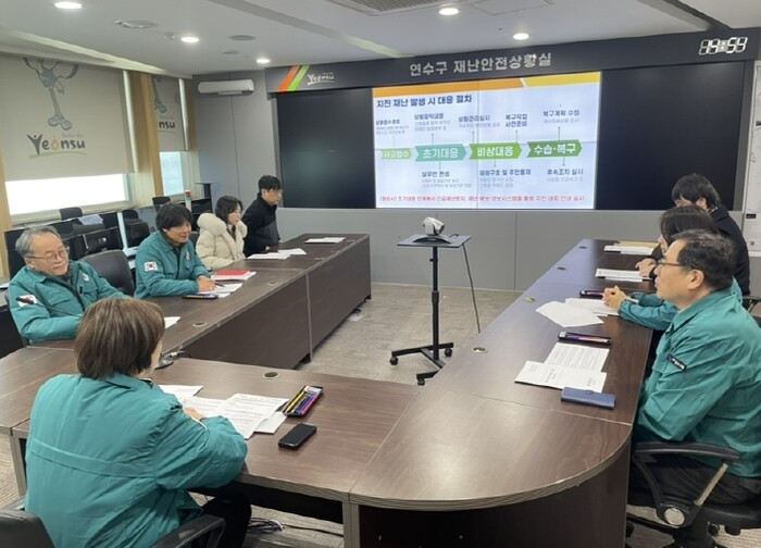 이번 훈련은 지진 발생 상황을 가정해 실제 재난 발생 시 대응 역량을 높이기 위해 ▲위기관리 매뉴얼 교육, ▲연수구 재난안전대책본부 운영, ▲안전협의체 위원 대상 지진 재난 초기대응 교육, ▲직원·주민 참여 대피 훈련 등으로 구성됐다.