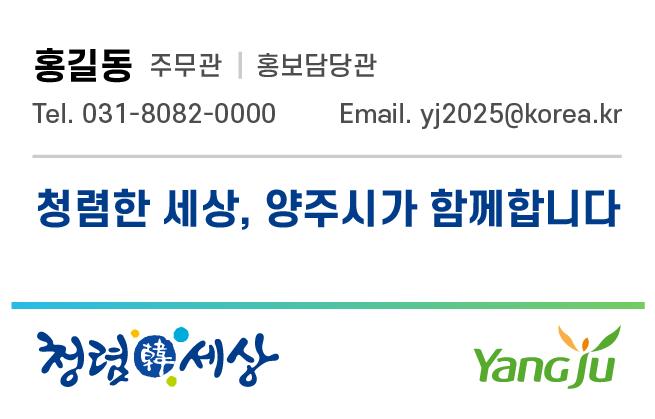 이메일 서명 배너에는 “청렴한 세상, 양주시가 함께합니다”라는 슬로건과 함께 ‘청렴韓세상’ 로고를 배치하여 청렴 실천 의지를 한층 강조했다.
