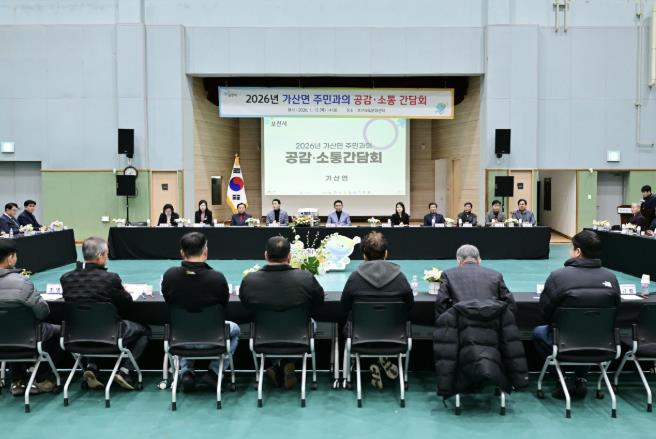 이번 간담회는 주민과 함께 지역 현안과 발전 방향을 논의하고 다양한 의견을 시정에 반영하기 위해 마련된 자리로, 포천시장을 비롯해 포천시의회 의장과 시의원, 경기도의회 의원, 가산면 기관·단체장, 각 리 이장 등 50여 명이 참석했다.