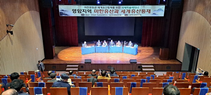 [세계로컬타임즈 강석운 기자] 지난10일 영암 기찬랜드 트로트센터 공연장에서 전남문화재연구소·마한역사문화연구회가 주최하고 마한역사문화연구회(회장 유인학) 주관, 영암군이 후원한 ‘영암지역 마한 유산과 세계유산 등재’를 주제로, ‘마한문화권 세계유산 등재를 위한 국제학술 세미나’가 열렸다.