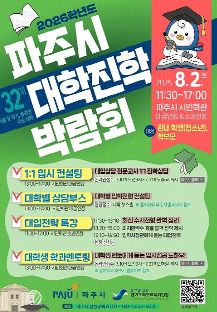 이번 박람회는 파주시가 주최하고 파주교육지원청이 협력하여 추진하며, 관내 학생과 학부모를 대상으로 수시전형에 대한 최신 정보를 종합적으로 제공하고 실질적인 대입 준비 지원을 위해 마련됐다.