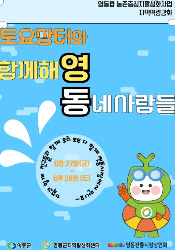 이번 축제는 영동군지역활성화센터가 주관하고, 영동군 농촌신활력과의 농촌중심지활성화사업, 영동군청 경제과의 전통시장 ‘토요장터’와 연계해 마련됐다.