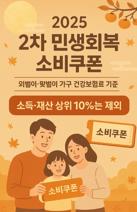 2차 소비쿠폰 사업은 2025년 6월 건강보험료 기준으로 가구소득 하위 90%를 대상으로 하며, 지원금은 1인당 10만 원이다.