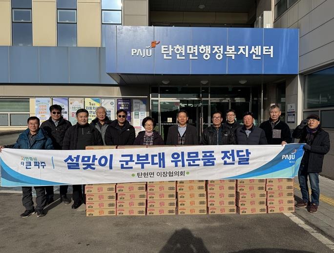 유재근 탄현면 이장협의회장은 “설 연휴에도 고향에 가지 못하고 국방의 의무를 다하는 국군장병들에게 조금이라도 위로가 됐으면 좋겠다”라며 “앞으로도 지속적인 유대관계를 위하여 노력하겠다”라고 말했다.