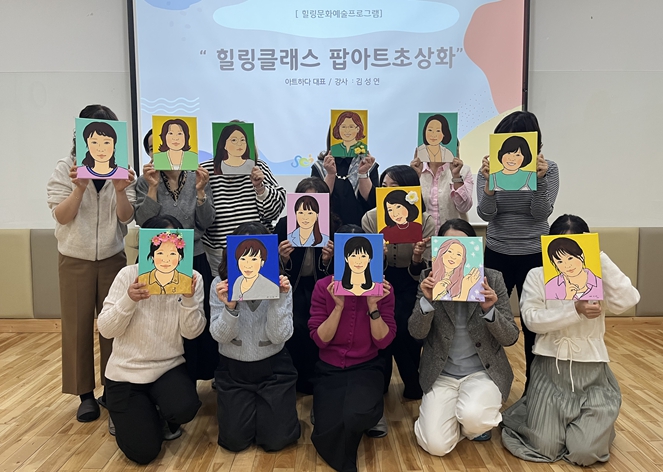 이번 힐링클래스는 컬러테라피를 활용한 ‘나만의 팝아트 초상화 그리기’ 활동으로어린이집 원장을 대상으로 진행했으며, 보육업무로 지쳐있는 보육교직원 스스로 심신을 회복할 수 있도록 도와 직무스트레스를 완화할 수 있는 재충전의 기회를 제공하고자 마련했다.