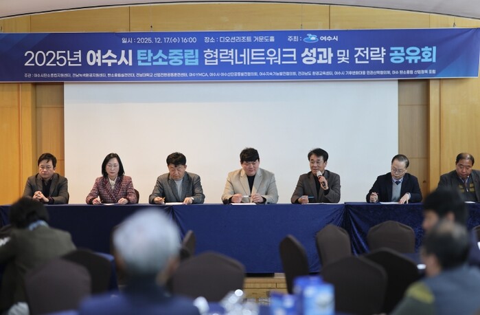 공유회에서는 여수시 탄소중립 협력네트워크 구성원 간 협력 및 공동사업 MOU 체결이 이뤄졌다. 또한 여수시의회 기후변화 대응 탄소중립연구회 소속 의원들에게 감사패 전달과 참여기관별 2025년 사업 추진 현황 및 성과가 공유됐다. 이어 여수시 탄소중립 협력네트워크 활성화 방안을 논의하는 토론도 진행됐다.