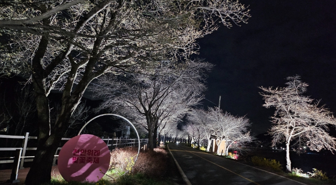 북면은 시민들이 낮과는 또 다른 매력을 가진 밤의 벚꽃을 즐길 수 있도록 용암1리 마을 입구부터 은석교까지 약 500m 구간 벚꽃나무 아래 경관조명을 설치했다.
