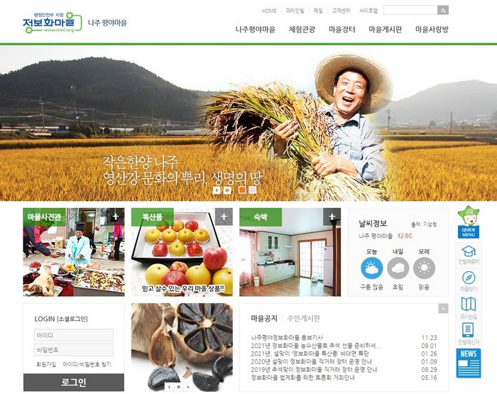 지난 2004년 정보화마을로 지정된 나주평야마을이 올해 ‘지역경쟁력 강화’(소득증진), ‘지역공동체 활성화’(지역홍보) 분야 우수 실적을 통해 ‘발전’ 마을로 평가 받는 성과를 거뒀다.