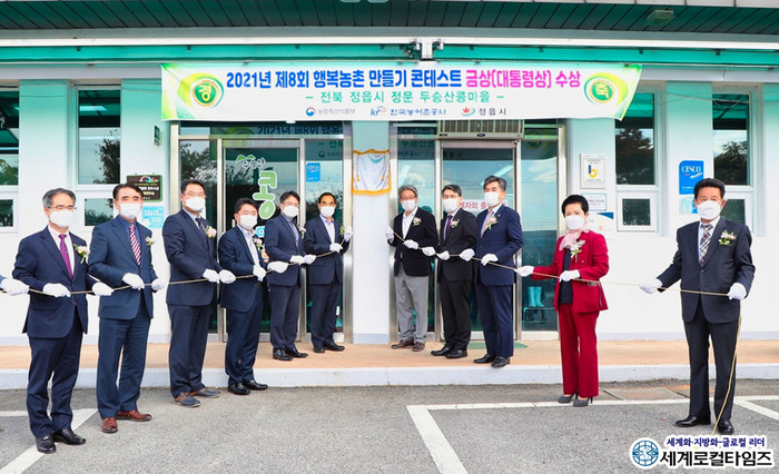 [세계로컬타임즈 조주연 기자] 전북 정읍 두승산 콩마을에서 ‘제8회 행복 농촌 만들기 콘테스트’ 대통령상 현판 제막 행사가 열렸다.