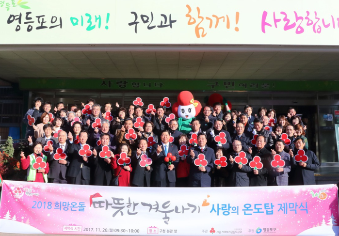 [세계로컬신문 강완수 기자] 서울 영등포구는 지난 20일 ‘사랑의 온도탑’ 제막식을 개최하고 연말연시 어려운 이웃을 돕기 위한 ‘2018 희망온돌 따뜻한 겨울나기’모금 사업에 본격적으로 돌입했다고 밝혔다.