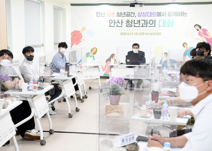 18일 안산시에 따르면 지난 17일 ‘경기내일스퀘어안산 상상대로’(상상대로)에서 진행된 간담회는 윤 시장 등이 참석한 가운데, 코로나19 장기화로 지친 청년들의 근황을 공유, 청년정책에 대한 의견을 듣기 위한 자리로 마련됐다.