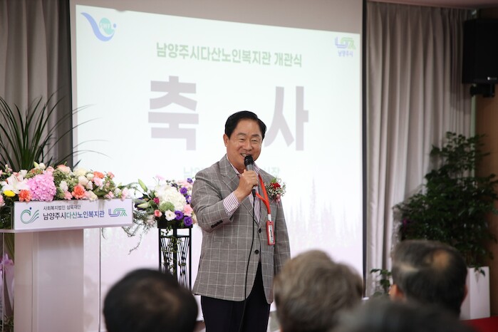 | ▲주광덕 남양주시장이 다산노인복지관 개관식에서 인사말을 하고 있다. [사진=남양주시] |