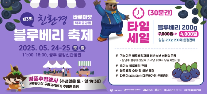 이번 축제는 지역 친환경 농산물의 우수성을 널리 알리고 지속 가능한 블루베리 생산을 장려하기 위해 마련된 자리로, 도시와 농촌이 함께 어우러지는 뜻깊은 교류의 장이 될 예정이다.