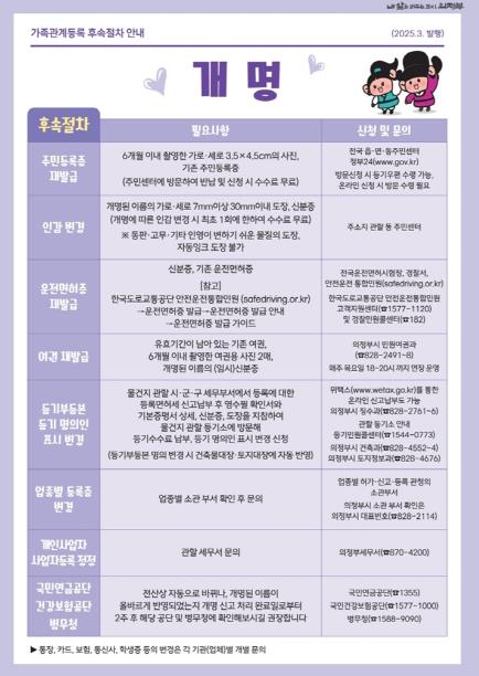 김지원 민원여권과장은 “개명신고를 보다 신속하게 처리해 주민들의 불편이 줄고, 후속 행정 절차도 원활하게 진행될 것”이라며 “앞으로도 시민이 체감할 수 있는 민원 서비스 개선에 최선을 다하겠다”고 말했다.