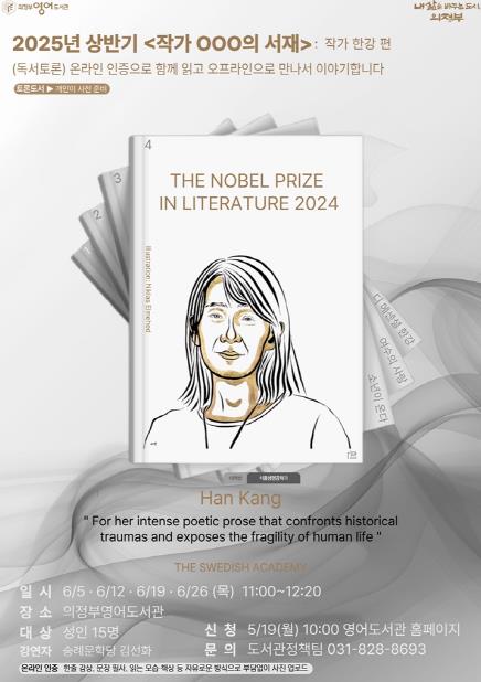 ‘작가 OOO의 서재’는 한 명의 작가를 선정해 해당 작가의 대표작들을 함께 읽고, 참여자 간의 토론을 통해 작품을 깊이 있게 이해하는 프로그램이다. 이번 상반기에는 2024년 노벨문학상 수상자인 작가 한강의 주요 작품을 선정해 매주 목요일 오전 11시, 총 4회에 걸쳐 진행한다.