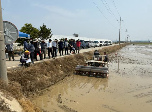 이번 행사에서는 무논직파 재배기술 시연과 함께 시범사업 추진 방향, 재배 사례 공유가 이뤄졌다.
