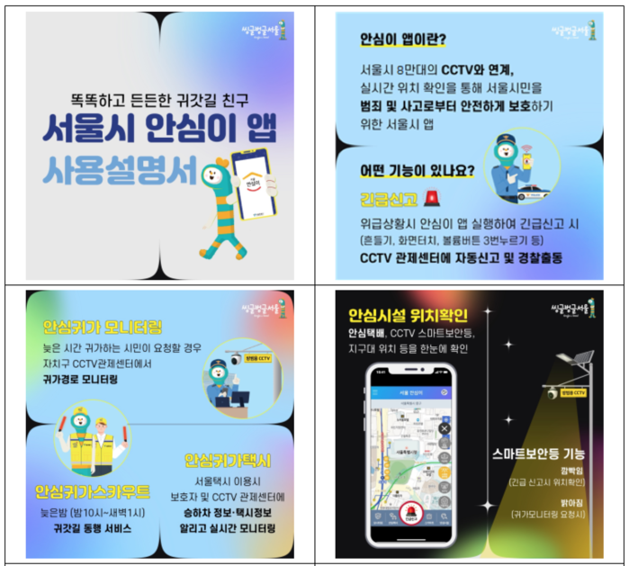 서울시민의 생활안심 필수 앱을 다운받아 서울에 사는 누구나 긴급신고, 귀가모니터링, 안심귀가택시, 안심귀가스카우트 예약 등 다양한 안전귀가 서비스를 이용할 수 있다.