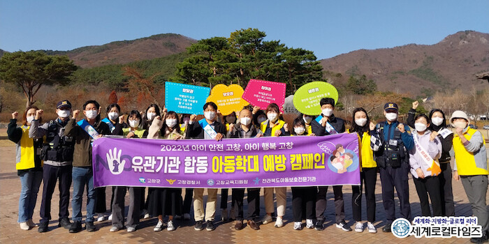 [세계로컬타임즈 조주연 기자] 전북 고창군이 “고창경찰서, 고창교육지원청, 전북아동보호전문기관과 합동으로 지난 26일 선운산 생태숲 진입광장에서 지역주민과 관광객을 대상으로 아동학대 예방 캠페인을 실시했다”고 밝혔다.