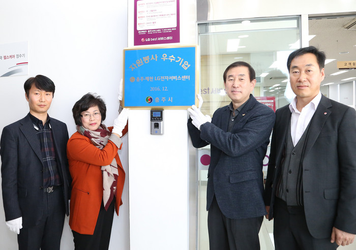 [세계로컬신문 온라인뉴스팀] 조길형 충북 충주시장이 28일 칠금동에 위치한 충주·제천 LG전자서비스센터(대표 박용남)를 자원봉사 우수기업으로 선정하고 인증패를 수여했다.