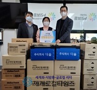 (주)다솔은 지난 6일, 코로나19로 힘겨워 하는 지역 주민들을 위한 후원물품 손소독제 등 생활물품 7종을 고양시 덕양구 사단법인 누리보듬(유미정 대표)에 전달했다.