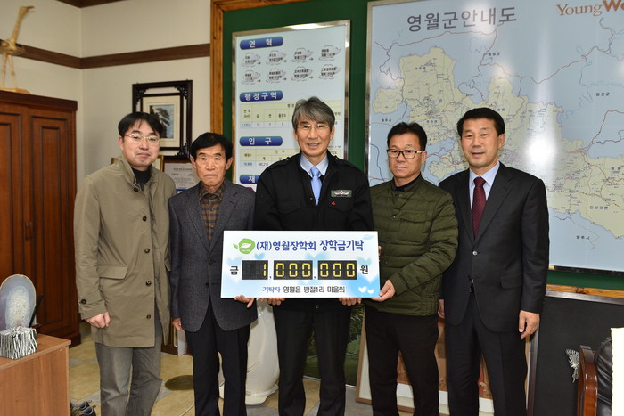 지난 6일 영월읍 방절1리 마을회(이장 김정구)는 강변 저류지 자전거 대여소 운영 수익금 중 100만원을 영월지역 인재육성을 위해 장학금으로 쓰이길 바란다며 재단법인 영월장학회(이사장 박선규)에 기탁했다.