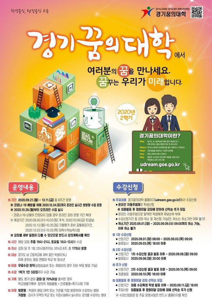 | ▲ 경기꿈의대학 2학기 수강 신청 안내 포스터. (자료=경기도교육청 제공) |