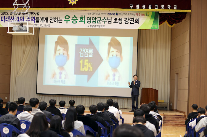 [세계로컬타임즈 강석운 기자] 우승희 영암군수가 지난 26일 구림공업고등학교의 초청으로 학생 및 교직원 130여명이 참석한 가운데‘내가 만드는 민주주의’를 주제로 강연을 진행했다.